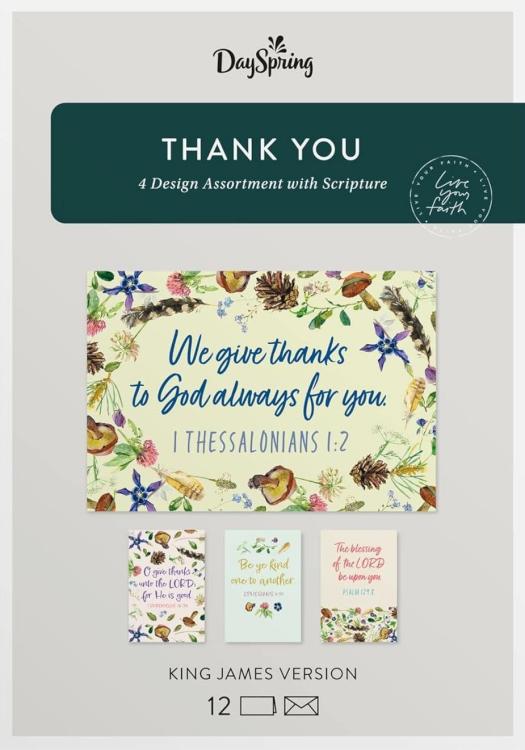 Whether you are saying thank you for a purchased gift, the gift of time or the gift service, a handwritten card or note of thanks is one of the most meaningful ways to express your thanks and appreciation. DaySpring s Thank You Boxed Card assortment with envelopes makes the art of the thank you card quite simple. Each card features a beautiful design, a heartfelt thankful sentiment, a Bible verse, and ample space for a personal note or prayer.